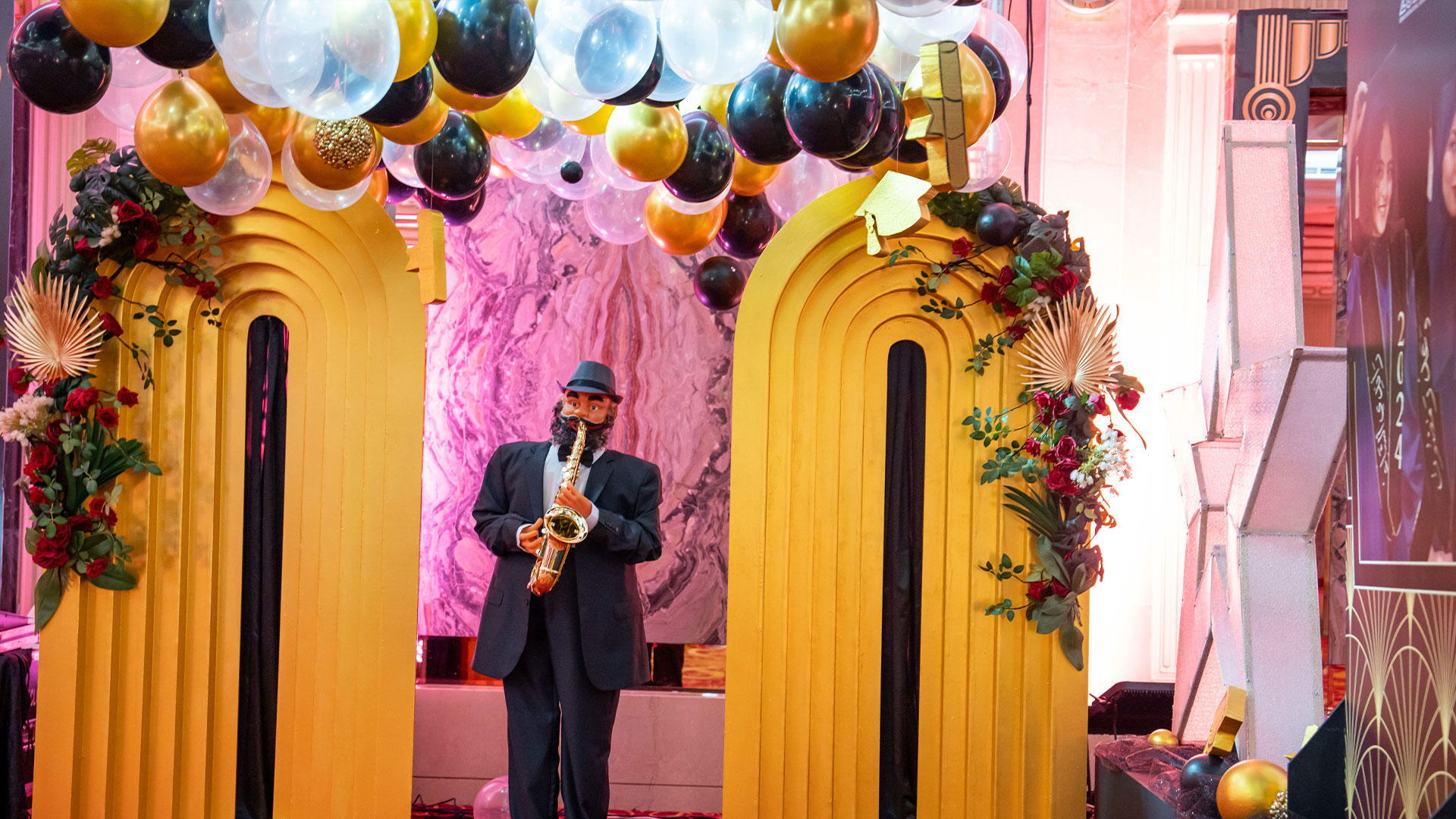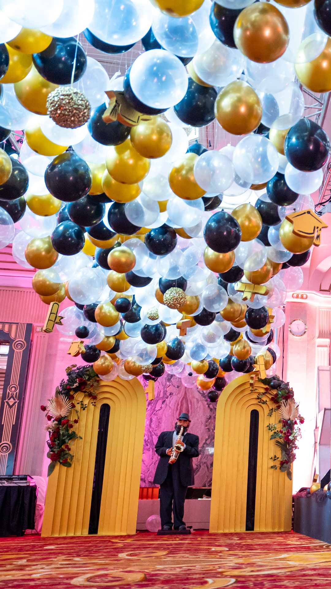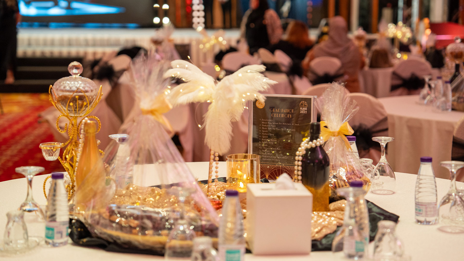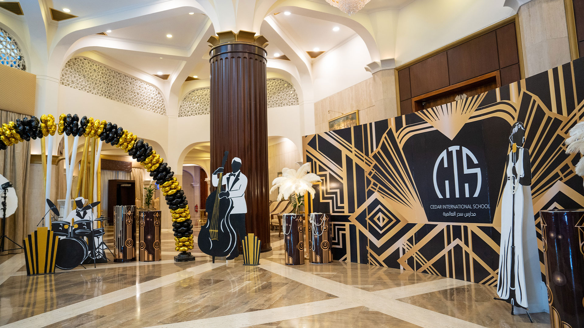 ظهر الحفل بمشهد متكامل يجمع بين الفخامة والاحتفال، مع تناغم واضح بين الإضاءات والمجسمات والخلفيات، مما أسهم في إبراز لحظة التخرج بصورة راقية وتنفيذ احترافي يعكس جاهزية الفريق وقدرته على تقديم جميع خدمات التنظيم تحت مظلة واحدة