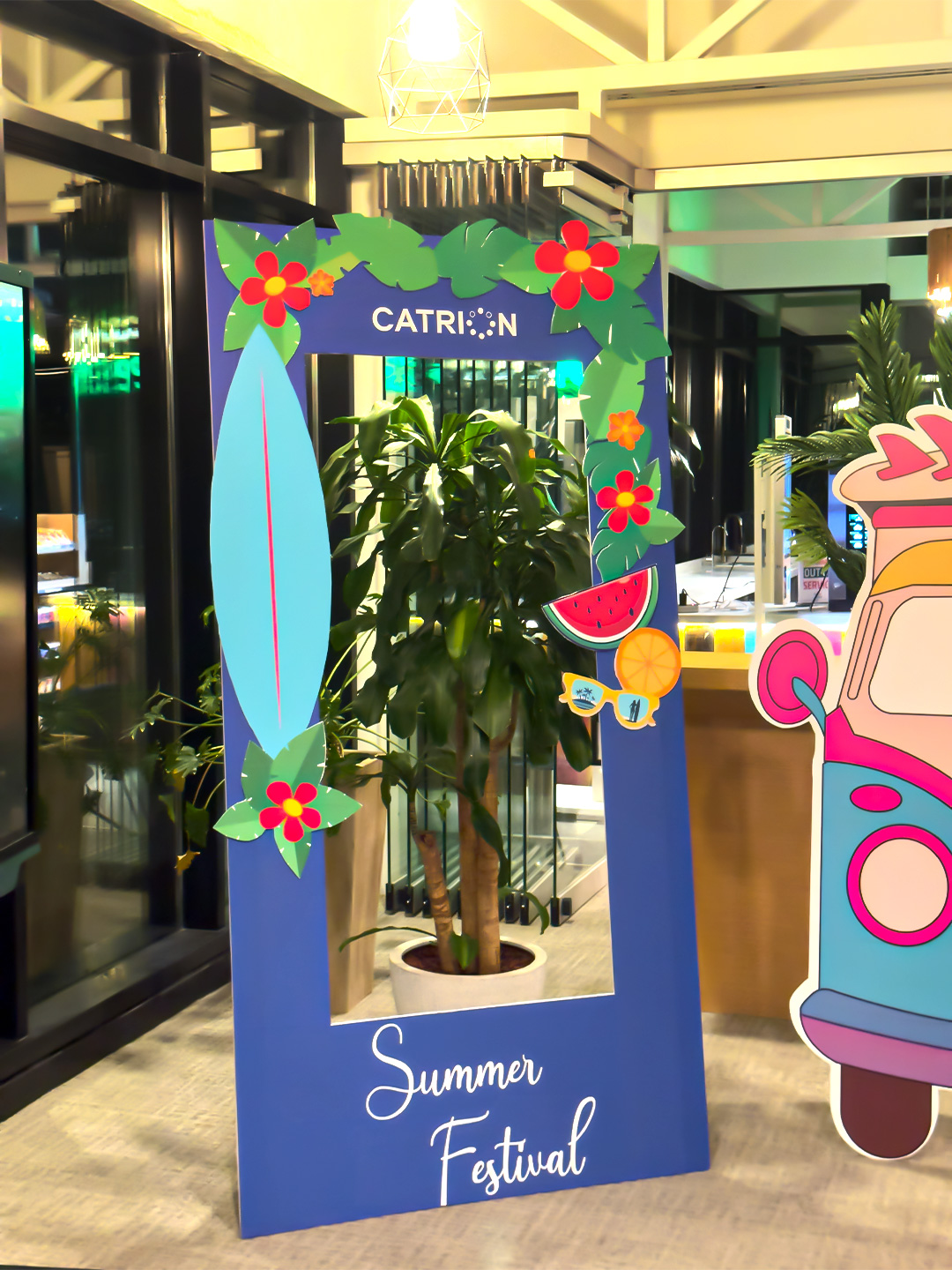 مهرجان صيفي فاخر، مع أجواء صيفية مبتكرة وخلفية تصوير أنيقة، بالإضافة إلى مجسمات تعكس روح الصيف صمم المهرجان ليقدم تجربة جذابة وراقية، تجمع بين المرح والإبداع في أجواء منعشة ومتفردة.